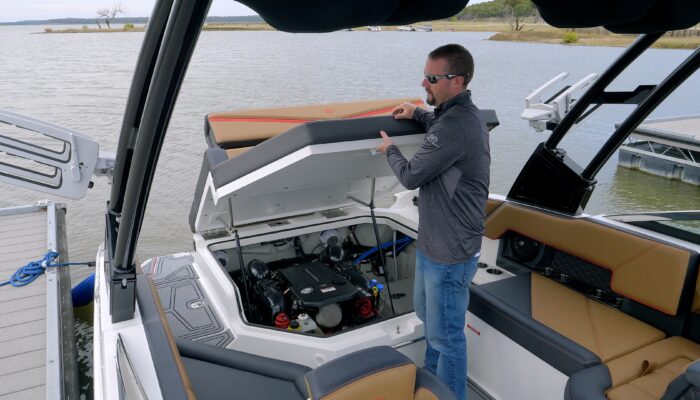 En el interior de la R4 Surf, descubre donde la tecnología de vanguardia se convierte en arte. Esta lancha deportiva familiar, con líneas elegantes, una maniobrabilidad precisa gracias a las dos pantallas táctiles Garmin Glass Cockpit y una amplia gama de opciones, cuenta con un interior excepcionalmente refinado que complementa su inigualable capacidad para deportes acuáticos.
