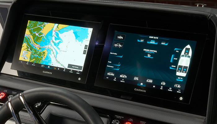 Aproveche la fiabilidad, durabilidad y capacidad de Garmin al mando de su embarcación con nuestra cabina de cristal de alta resolución y repleta de funciones. La avanzada tecnología de navegación, conectividad e instrumentación se combina con una interfaz intuitiva para satisfacer las necesidades de cualquier capitán.